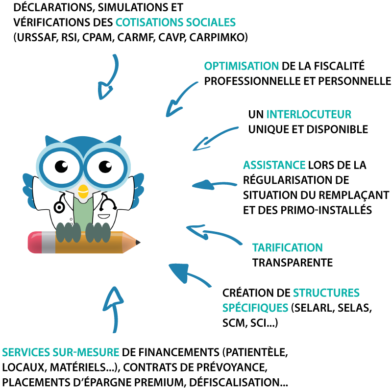 Accolib Santé optimise votre situation professionnelle et personnelle en vous faisant bénéficier de son expertise dans le domaine social, fiscal et patrimonial. Accolib Santé met également à votre disposition des offres de prévoyance, d'assurance professionnelle, de financement de cabinet, de placements premium à frais plafonnés...